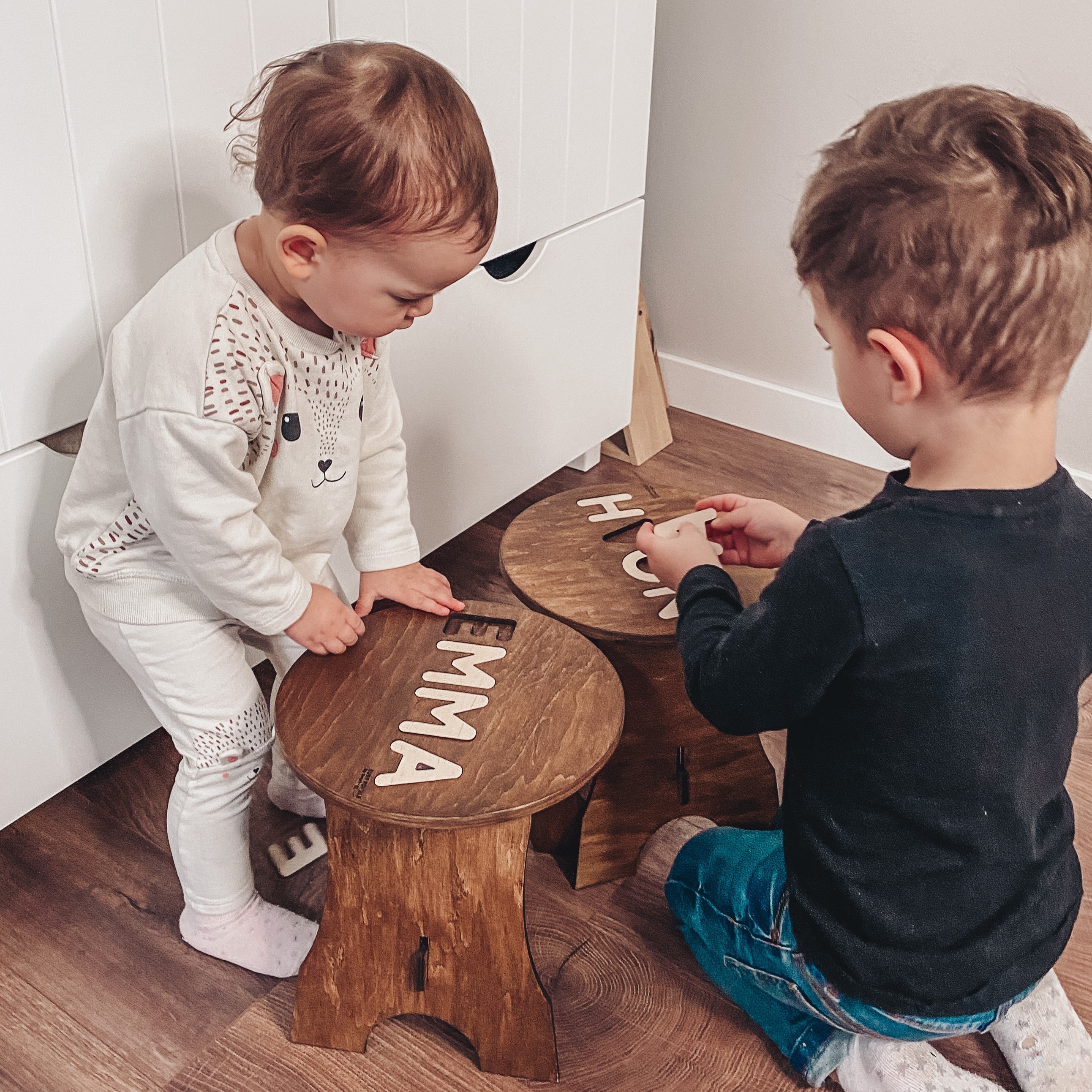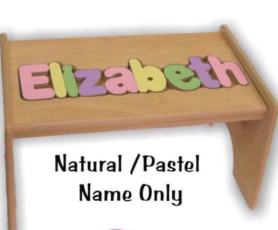 Made in america, the name puzzle . Choose a name puzzle so your toddler preschool children can learn letters, colors and . Our wooden step stools help to teach them how to spell their name. The hollow woodworks personalized puzzle stool bench will give your tot a boost to reach their favorite book on a shelf, and doubles as a fun puzzle game! Crafted with furniture grade birch veneer .